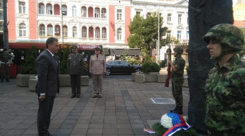 Поводом обележавања 80 година од злочина над цивилима од стране окупационих снага на Теразијама, државни секретар Министарства за рад, запошљавање, борачка и социјална питања Миодраг Капор предводио је данас државну церемонију полагања венаца и одавања почасти на београдском тргу Теразије код Споменика обешеним родољубима.