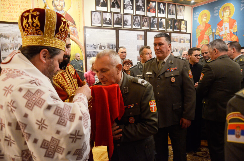 На крају Свете литургије додељене су Грамате Његове Светости Патријарха српског Господина Порфирија заслужним припадницима Копнене војске, заставнику прве класе Дејану Петровићу, помоћнику војног свештеника Команде Копнене војске, заставнику Драгану Стакићу из 3. батаљона везе бригаде везе и потпуковнику у пензији Раденку Марковићу, који су допринели развоју верске службе након њеног обнављања у Војсци Србије. Архијерејску грамату за допринос уређењу Богослужбеног простора у Команди Копнене војске доделио је Епископ Нишки Арсеније адвокату др Небојши Станковићу из Ниша.