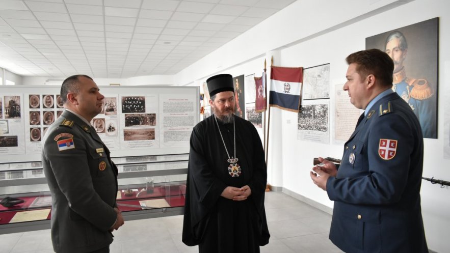 Његово преосвештенство епископ Доситеј обишао је и спомен собу Војне академије. Приликом обилска спомен собе уписао се у књигу утисака.
